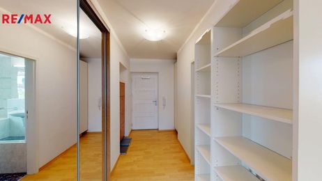 V předsíni je praktická vestavná skříň a praktický botník. Koupelna disponuje jak vanou tak i sprchovým koutem, je zde podlahové topení a wc je odděleno od prostoru koupelny. Byt může být dispozičně pojat jako 1+1 nebo jako 2kk.