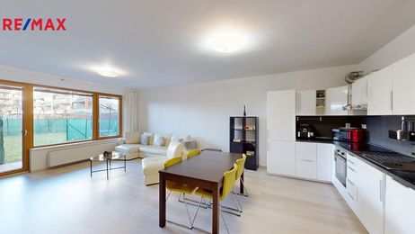 Exkluzivně nabízím k dlouhodobému pronájmu byt o dispozici 2+kk s komorou v bytě (72 m2), 2 x terasa (7 m2 a 11 m2) + 2 x zahrada (85 m2 a 20 m2) a garážovým stáním, k užívání též náleží sklep 3m2 v novostavbě z roku 2017 v ulici Rorýsova, Praha 4 Modřany.